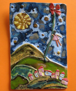 Oryginalny, ręcznie wykonany ceramiczny obrazek, pasujący do każdego wnętrza. Sprawdzi się jako prezent dla brata, siostry, rodziców, przyjaciela