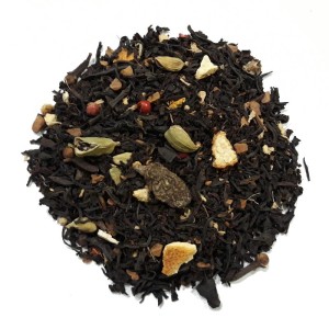 Skład: herbata czarna, cynamon, kardamon, rodzynki (rodzynki, olej słonecznikowy, substancja konserwująca e220), imbir, goździk, pomarańcza kandyz. (skórka pom., cukier, syrop glukozowy, regulator kwasowości e330, substancja konserwująca e202.