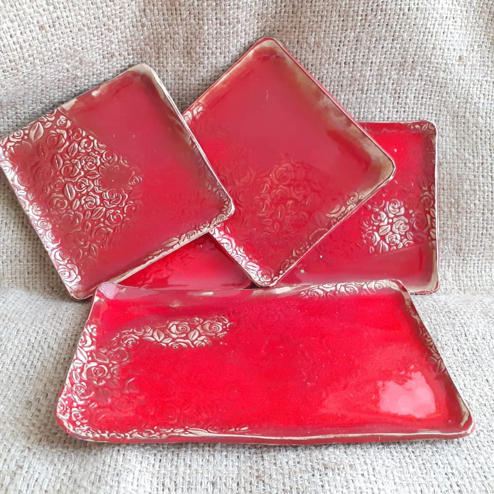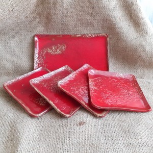 Komplet talerzyków do sushi, deserowych Red
