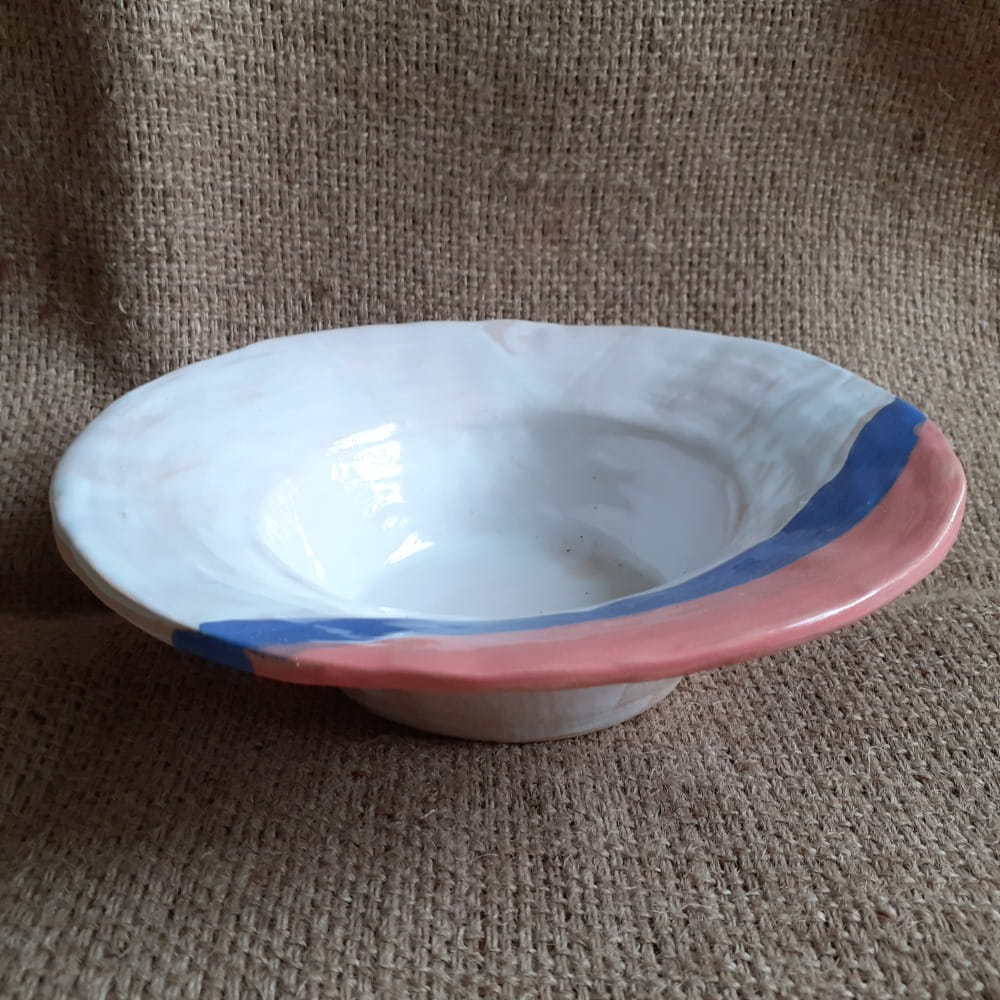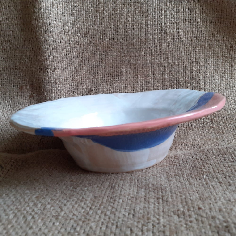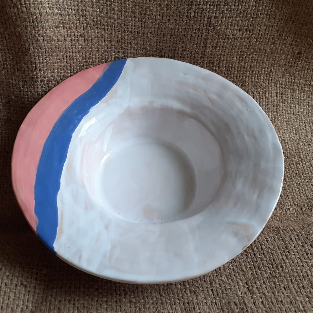 Miska na zupę- dużą, porcję spagetti, na ramen. Miska ceramiczna jest ręcznie robiona i zdobiona. Strona zewnętrzna o nierównej, "podrapanej" powierzchni.
