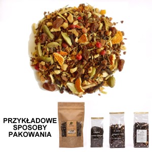 Wyśmienita mieszanka przypraw do piwa grzanego. Zawiera w składzie: skórkę pomarańczową, pomarańczę kandyzowaną, rodzynki, czerwony pieprz, kawałki cynamonu, imbir, goździki i wiele innych aromatycznych przypraw.