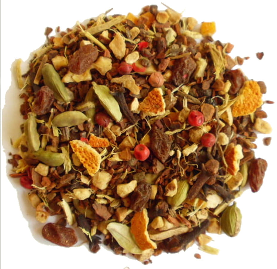 Skład: cynamon, kardamon, rodzynki (rodzynki, olej słonecznikowy, substancja konserwująca E220), imbir, goździk, pomarańcza kandyzowana (skórka pomarańczowa, cukier, syrop glukozowy, regulator kwasowości E330, substancja konserwująca E202, aromat), skórka pomarańczy, pieprz, lukrecja.