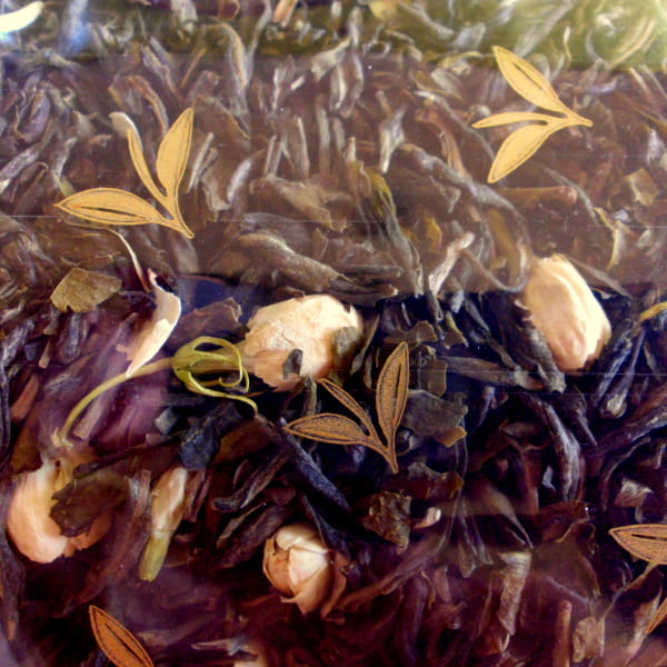 Torebki przeźroczyste ze złotymi listkami do pakowania herbaty, kawy, ziół o wysokim stopniu przeźroczystości, foliowe 100 g. Dobrze wykonane i eleganckie torebki do pakowania herbaty, kawy, ziół lub Yerba Mate z przeźroczystej folii, do zapakowania 100 g produktów. Nadają się również do pakowania kawy i innych produktów spożywczych, kosmetyków itp.