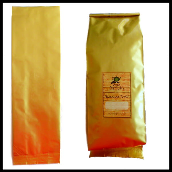 Bardzo praktyczne i eleganckie torebki aluminiowe na kawę i inne produkty sypkie - eleganckim złotym kolorze. Pojemność od 250 gram do maksymalnie 500 gram. Wykonanie tej torebki zapewnia bardzo dużą szczelność. Można ją zamykać klipsami o długości 11 cm lub zgrzewać specjalną zgrzewarką do torebek aluminiowych.